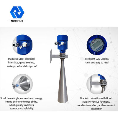 El sensor de la serie NYRD80X de medidor de nivel de radar es un instrumento de medición de nivel de radar de alta frecuencia de 26 GHz con una distancia máxima de medición de 80 m. La antena de posicionamiento de radar emite un pulso de microondas estrecho que se transmite hacia abajo a través de la antena. Después de que la onda de pulso toca la superficie del medio medido, se refleja y es recibida nuevamente por el sistema de antena. La señal se transmite a la parte del circuito electrónico y se convierte automáticamente en una señal de nivel de objeto (debido a que los pulsos viajan tan rápido, el tiempo que tarda una onda electromagnética en alcanzar su objetivo y regresar al receptor es casi instantáneo).