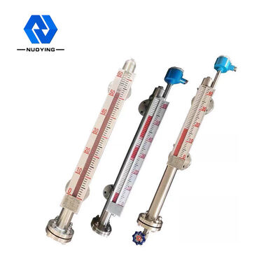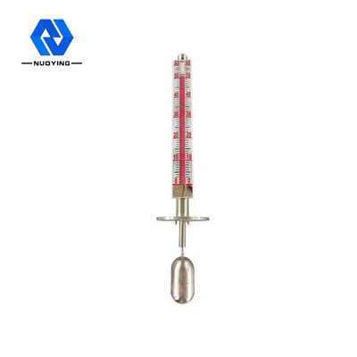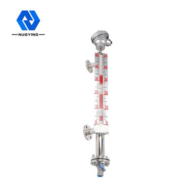 NYUHZ Transmisor de nivel magnético con solapa de brida tiene dos partes principales,una cavidad con una bola flotante llamada tubo de medición o tubo principal, y un panel indicador. La cavidad está conectada con el tanque medio a través de bridas u otros tipos de conexión adecuados.Así que la bola flotante que indica el nivel medio en el tubo de medición irá hacia arriba y hacia abajo junto con el nivel en el tanqueLa bola flotante tiene un imán permanente que atraerá a las aletas de color magnético correspondiente para girar.Entonces el valor real de nivel medio se mostrará claramente en el panel de indicación, la gente puede leer fácilmente.